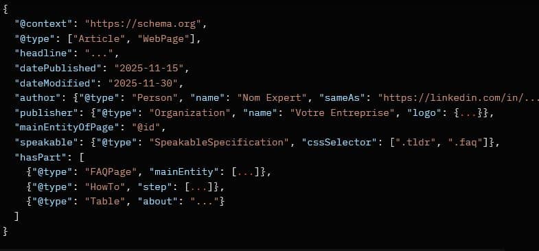 | Structured | Nice-to-have (rich snippets) | Mandatory and ultra-complete (FAQPage, HowTo, Article + speakable + author Person) | Without rich JSON-LD → impossible or erroneous extraction |